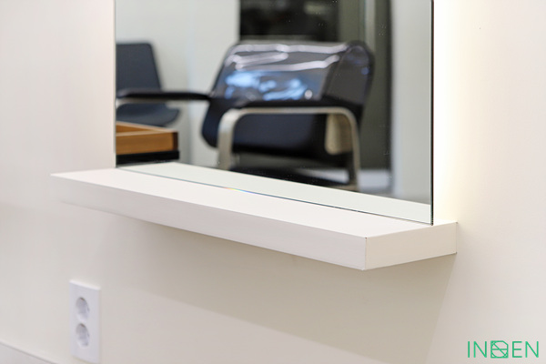 [ 단독형 경대 3개, 샴푸대 1개로 구성되어 있는 현장입니다. ]